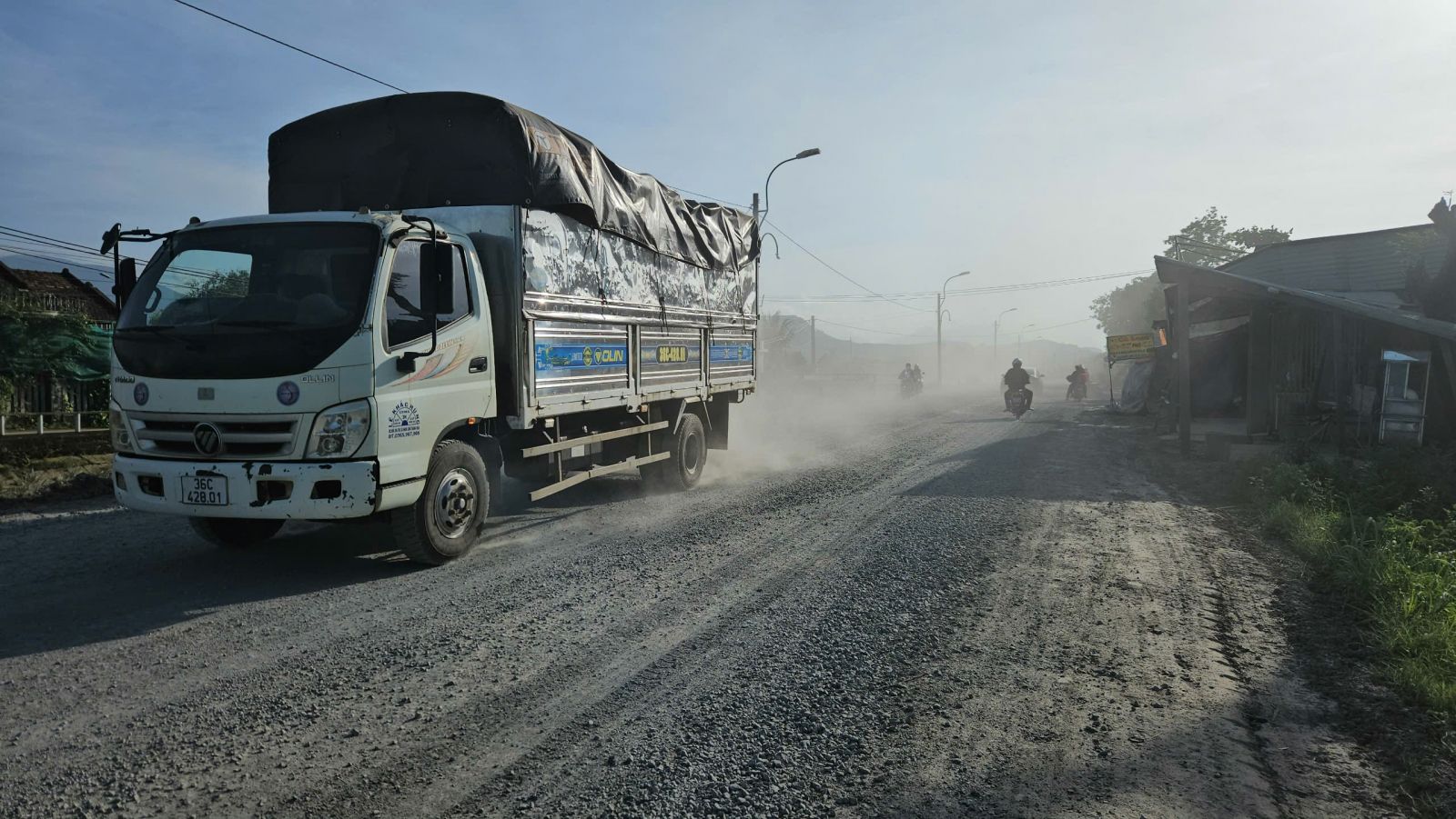 Với lưu lượng phương tiên lớn làm cho phần đường xuống cấp nghiêm trọng trên QL29.