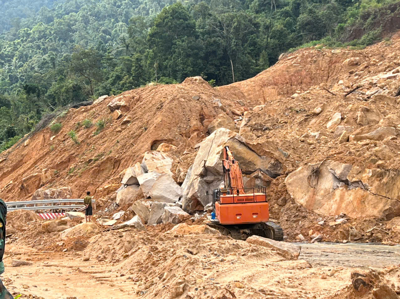 Mặc dù thời tiết trên đèo Khánh Lê liên tục diễn biến bất lợi, với mưa tiếp diễn, khiến mặt đường trở nên trơn trượt, bùn đất nhão nhoét và nguy cơ sạt lở thứ cấp luôn rình rập, nhưng tinh thần làm việc của các cán bộ, công nhân và lực lượng quân sự vẫn không hề suy giảm.